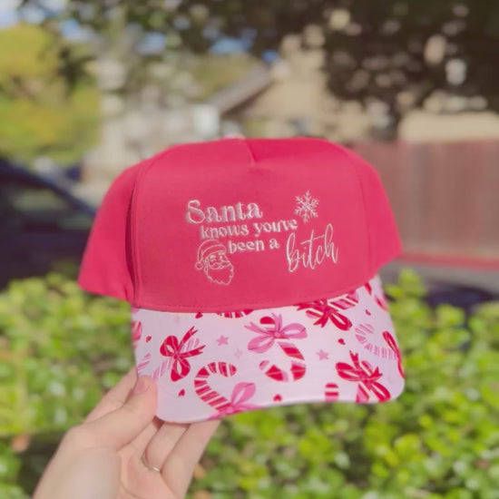 Santa Knows You’ve Been A…. Embroidered Christmas Trucker Hat